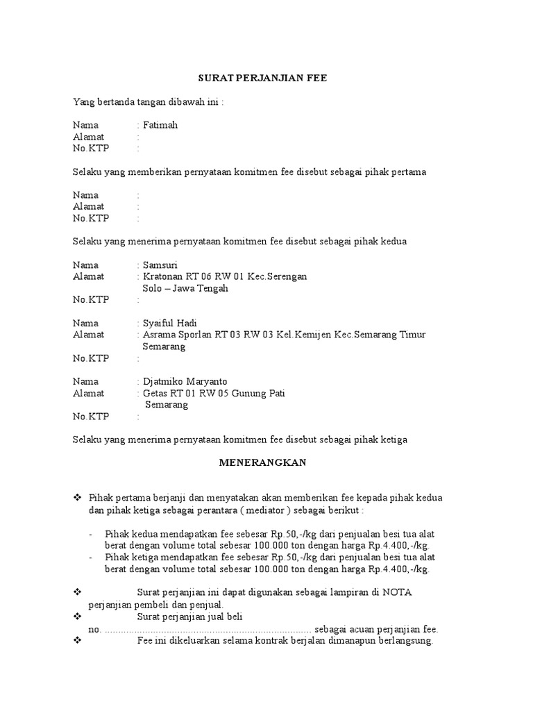 Contoh Surat Perjanjian Kerja Sama Usaha Dan Jasa Yang Sah from cdn.statically.io Surat perjanjian komitmen fee jual rumah / contoh surat perjanjian over kredit dibawah tangan. Devi yulia 25 jul 2019 info leave a comment 36 views. Booking fee dilakukan dikantor pemasaran dan langsung diserahkan kepada pihak pertama. Jika anda menjadi mediator atau jasa perantara jual beli biasanya akan mendapat fee ataupun uang komisi dari pihak penjual. Kedua pihak telah menyepakati perjanjian komitmen royalty/fee dengan ketentuan sebagai berikut: The collection that comprising chosen picture and the best amongst others. Contoh surat perjanjian fee mediator backup gambar. Contoh surat perjanjian fee mediator batubara adalah gambar contoh surat berdefinisi tinggi dan memiliki ukuran 1203×1600.